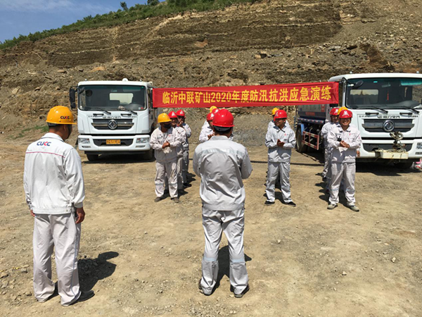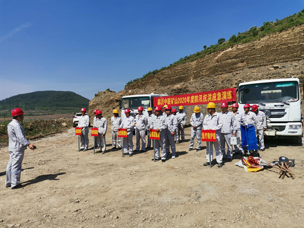 此次演練的模擬場景是,天下暴雨,中部山頭山洪順水道而下,匯于東采區與南采區交匯處,急流入東、南凹陷采場,造成東、南105平臺水淹的危險,威脅采裝運輸設備的安全和人身安全。