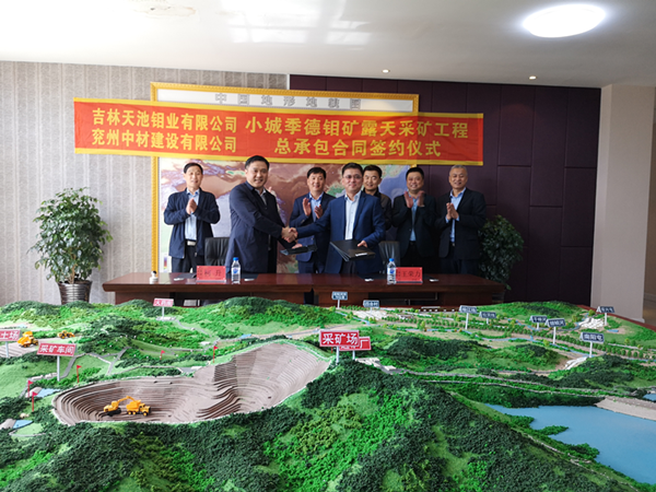 2019528858分,吉林舒蘭小城季德鉬礦露天采礦工程總承包合同簽約儀式在吉林天池鉬業有限公司舉行。參加簽約儀式的還有舒蘭市副市長明繼國、吉林天池鉬業和兗州中材相關負責人等。