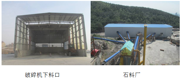 1)、對破碎、篩分系統及生產加工車間進行封閉,并在關鍵崗位配備了除塵器,對礦石破碎機下料口安裝了增濕噴淋裝置。