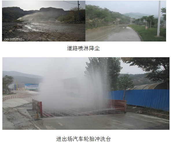 2)、針對所有進出廠區的礦車,安裝了汽車輪胎自動沖水裝置,并設置了汽車洗胎專用通道, 道路都裝有噴淋裝置對道路灑水,降低粉塵排放。對礦區主要道路進行了硬化,并對道 路兩側及礦區實施綠化。