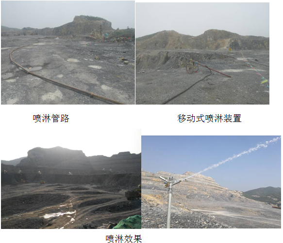 3)、對于采準作業面,安裝有移動式的噴淋裝置,對每個挖裝作業點都實時進行噴淋使其爆渣保持濕潤,在裝車過程中不再揚塵,采準作業面的道路,使用水車灑水降塵。