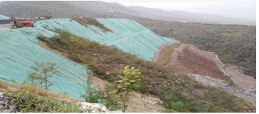 4)、對于礦山需要排棄的廢石土,設置專用堆場對尾礦進行集中堆放,尾礦的堆棄是分臺階進行,對于臺階邊坡進行刷坡處理,并用綠網覆蓋后進行植被種子的種植。