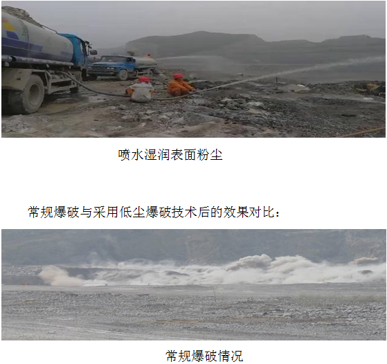 5)、采用低塵爆破技術對于礦山爆破進行降塵作業: